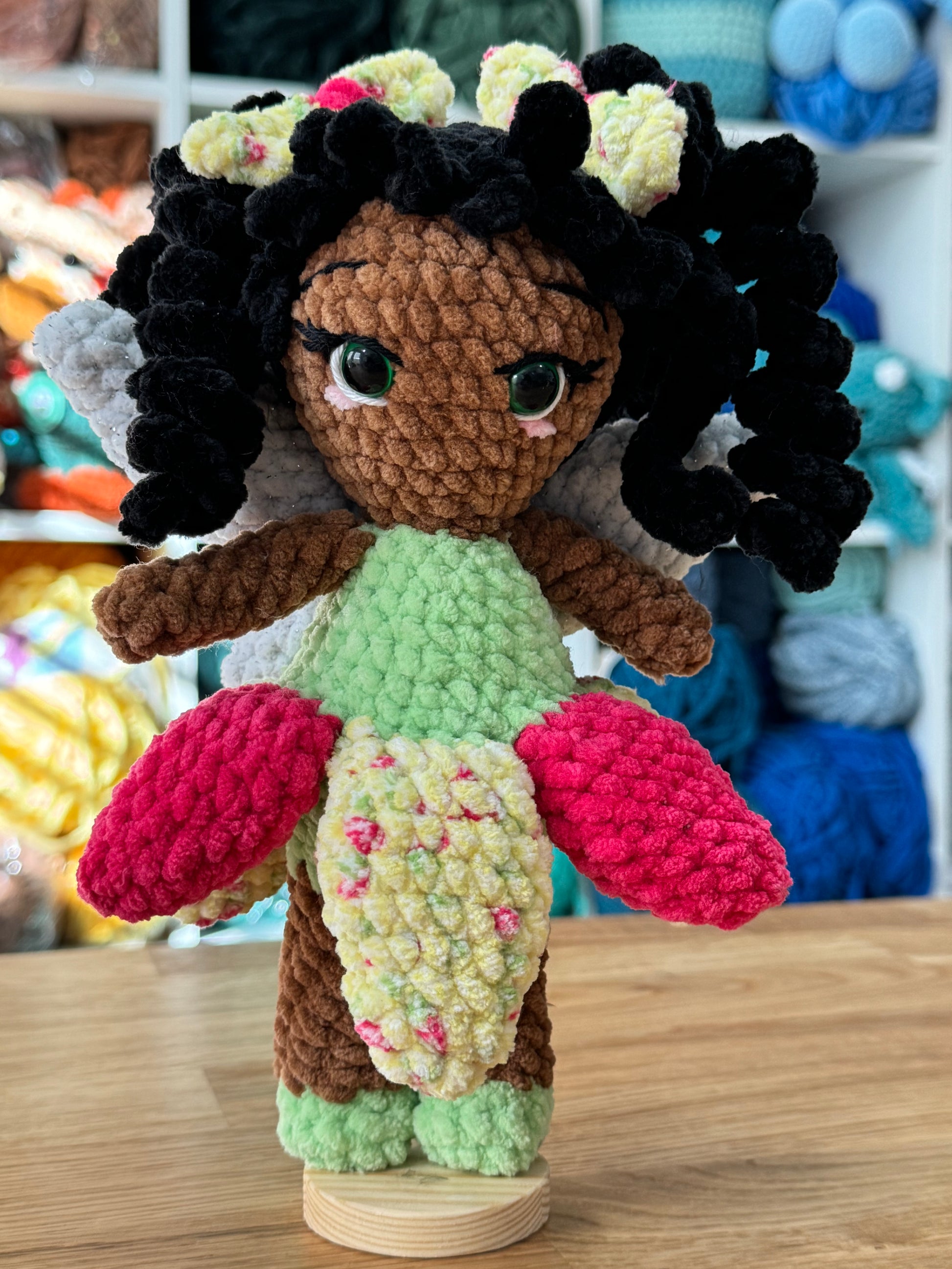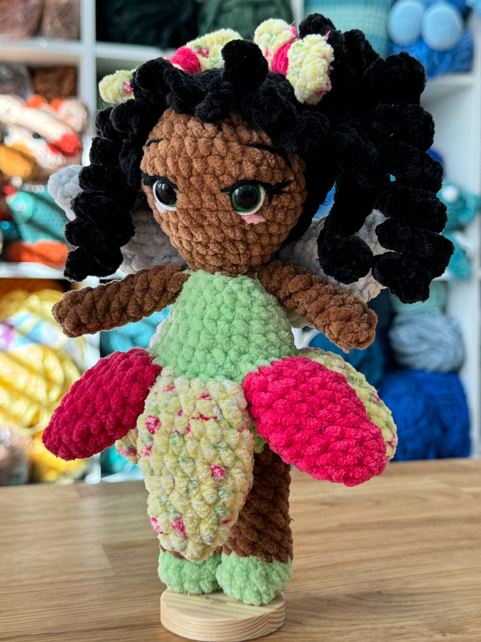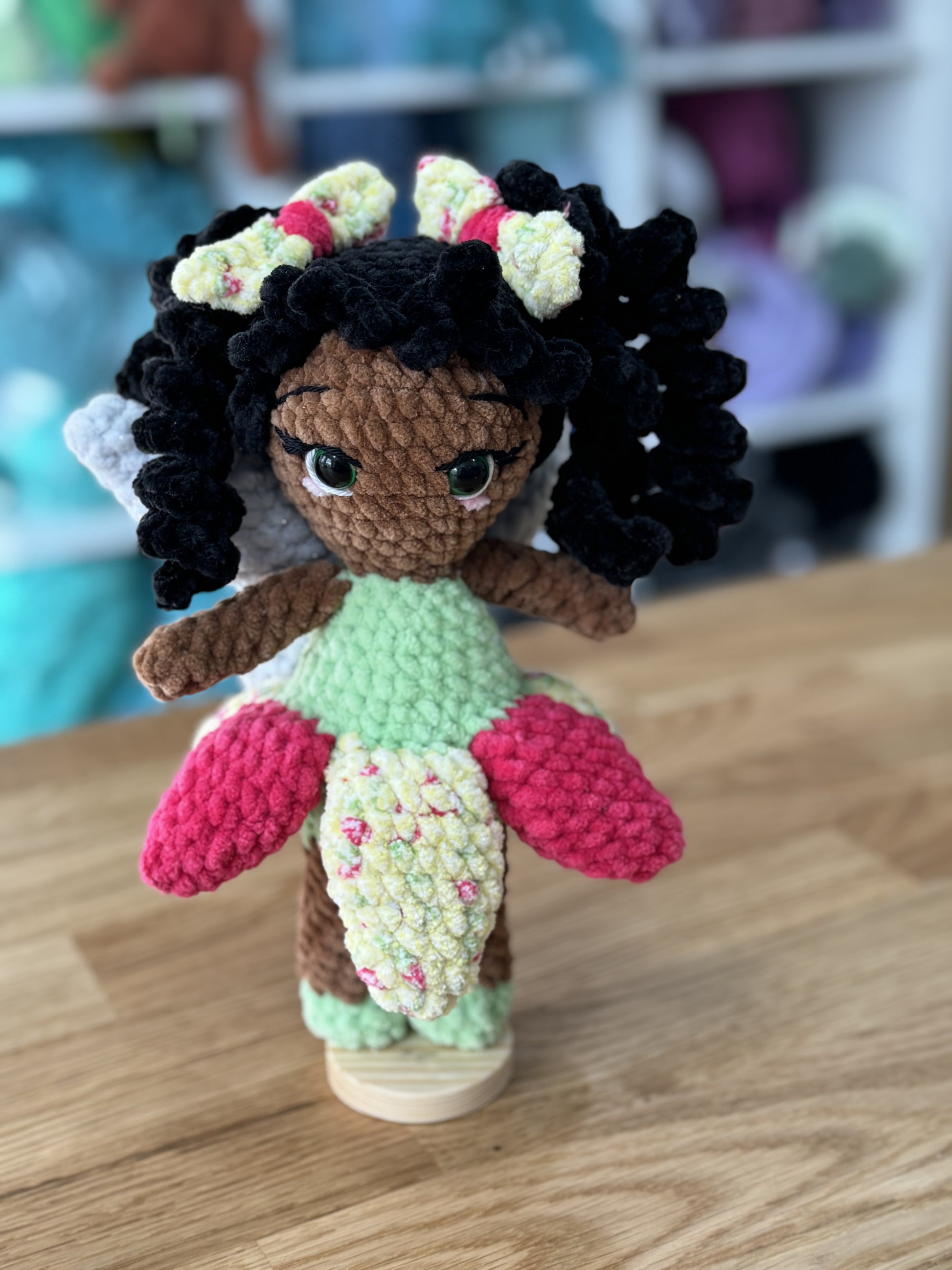 crocheted fairy. Lights and stand are not included.