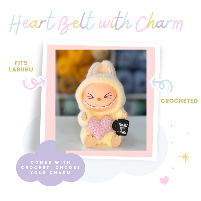Handmade Crochet Heart Belt | Labubu Accessory | Wearable Mini Bag with Optional Charm