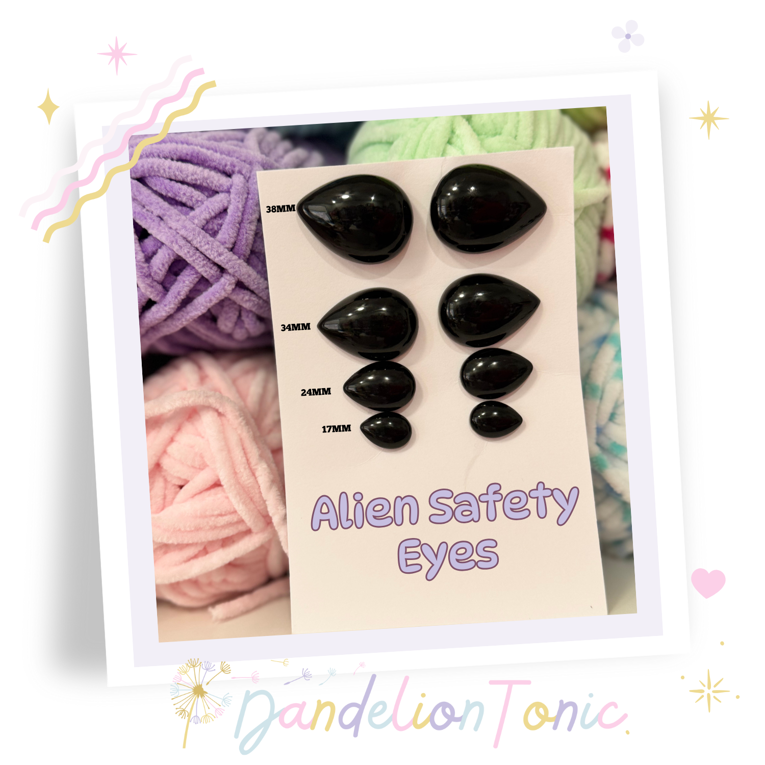 Add a truly out-of-this-world touch to your creations with our Unique Alien Resin Safety Eyes in solid black. These handcrafted, hand-painted eyes are unlike anything else—featuring a distinctive convex shape that sits beautifully on the surface of your plush, doll, or art project for maximum visual impact.