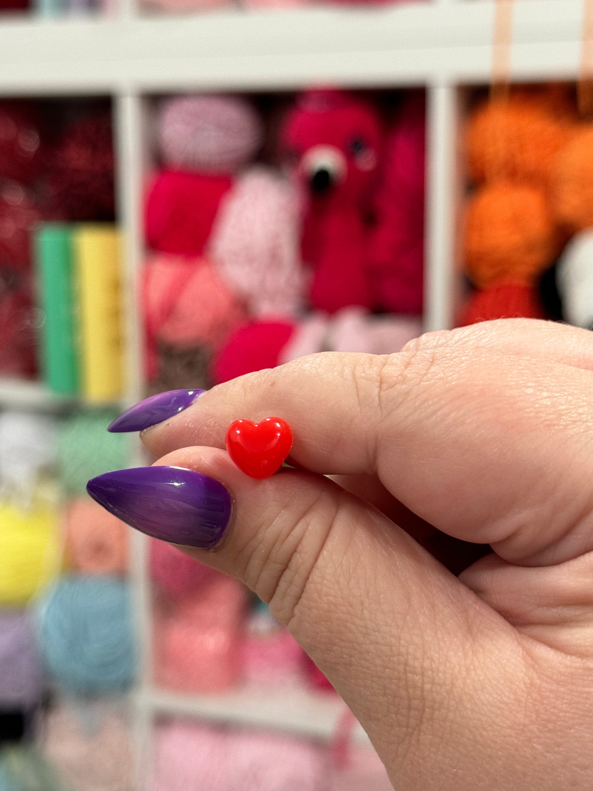These plastic heart safety eyes/noses are perfect for adding a cute and playful touch to your crafts. They are easy to use and will not easily break or become damaged. Whether you are making stuffed animals, dolls, or any other craft project, these eyes/noses are sure to add a fun and unique touch to your creation.
