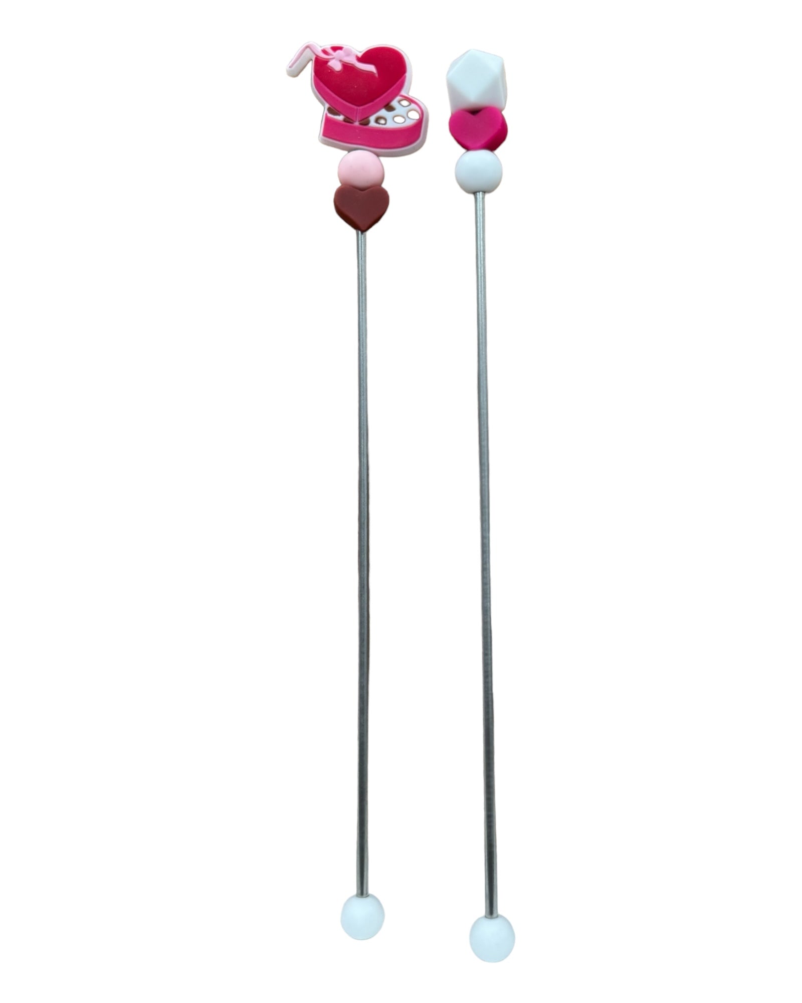 Each set comes with two stix, one with a focal and one beaded. They are 9 inches long with about 7 - 8 inches of working space. Each Stix comes with a reusable bag and safety tip.