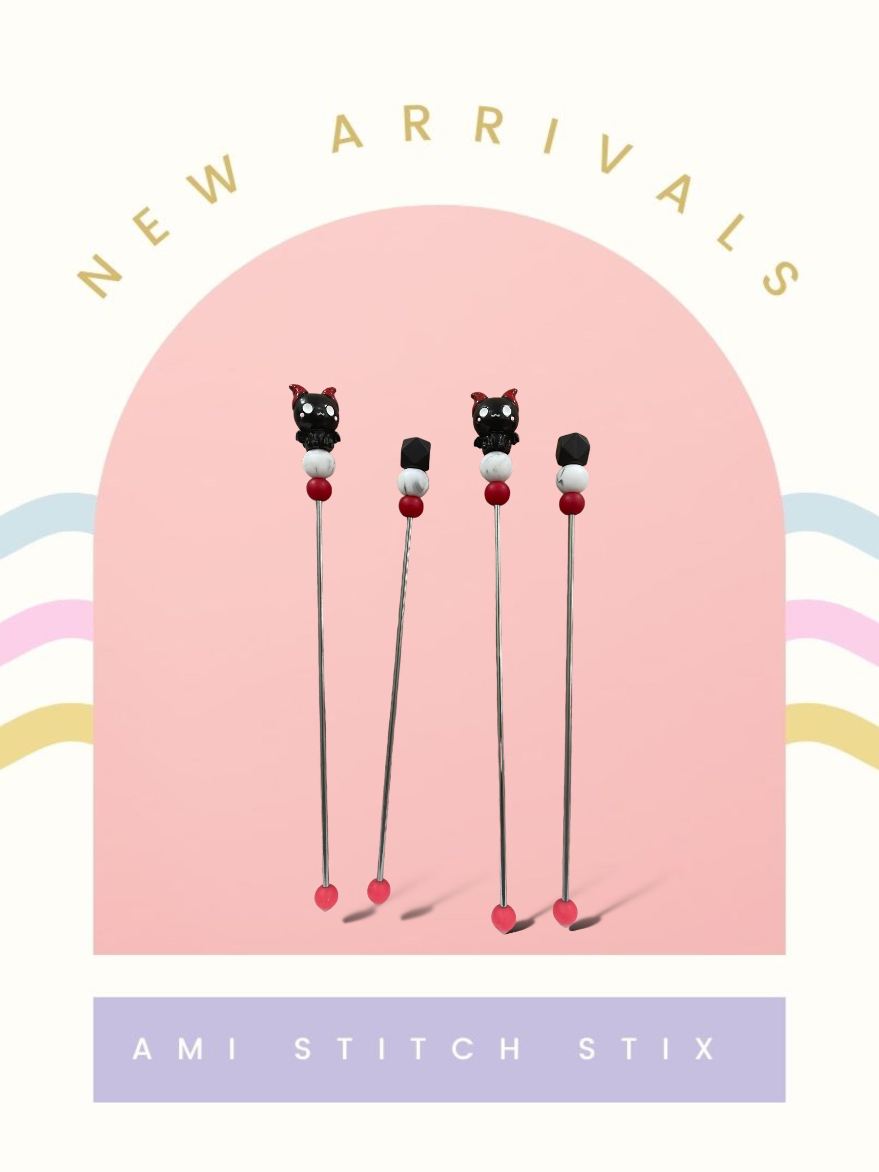 Each set comes with two stix, one with a focal and one beaded. They are 9 inches long with about 7 - 8 inches of working space. Each Stix comes with a reusable bag and safety tip.