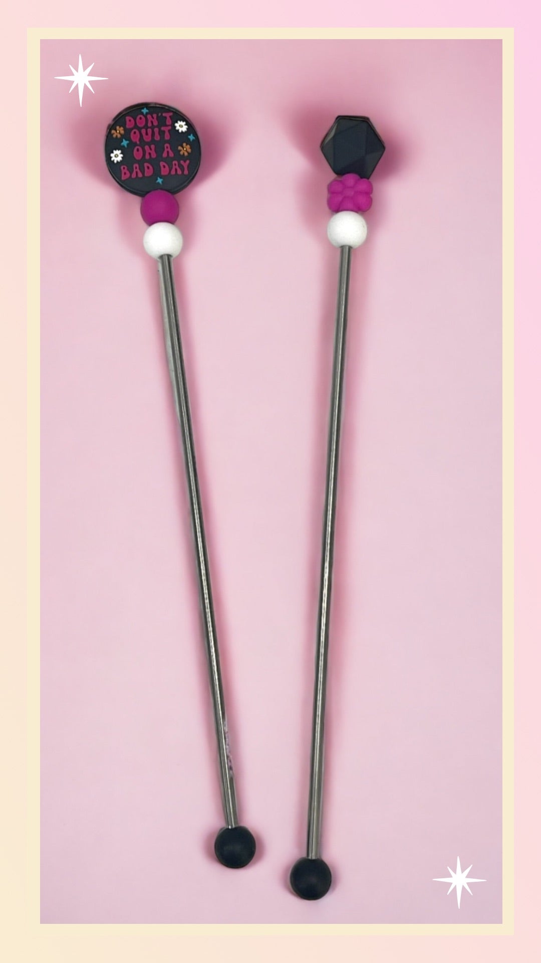 Each set comes with two stix, one with a focal and one beaded. They are 9 inches long with about 7 - 8 inches of working space. Each Stix comes with a reusable bag and safety tip.