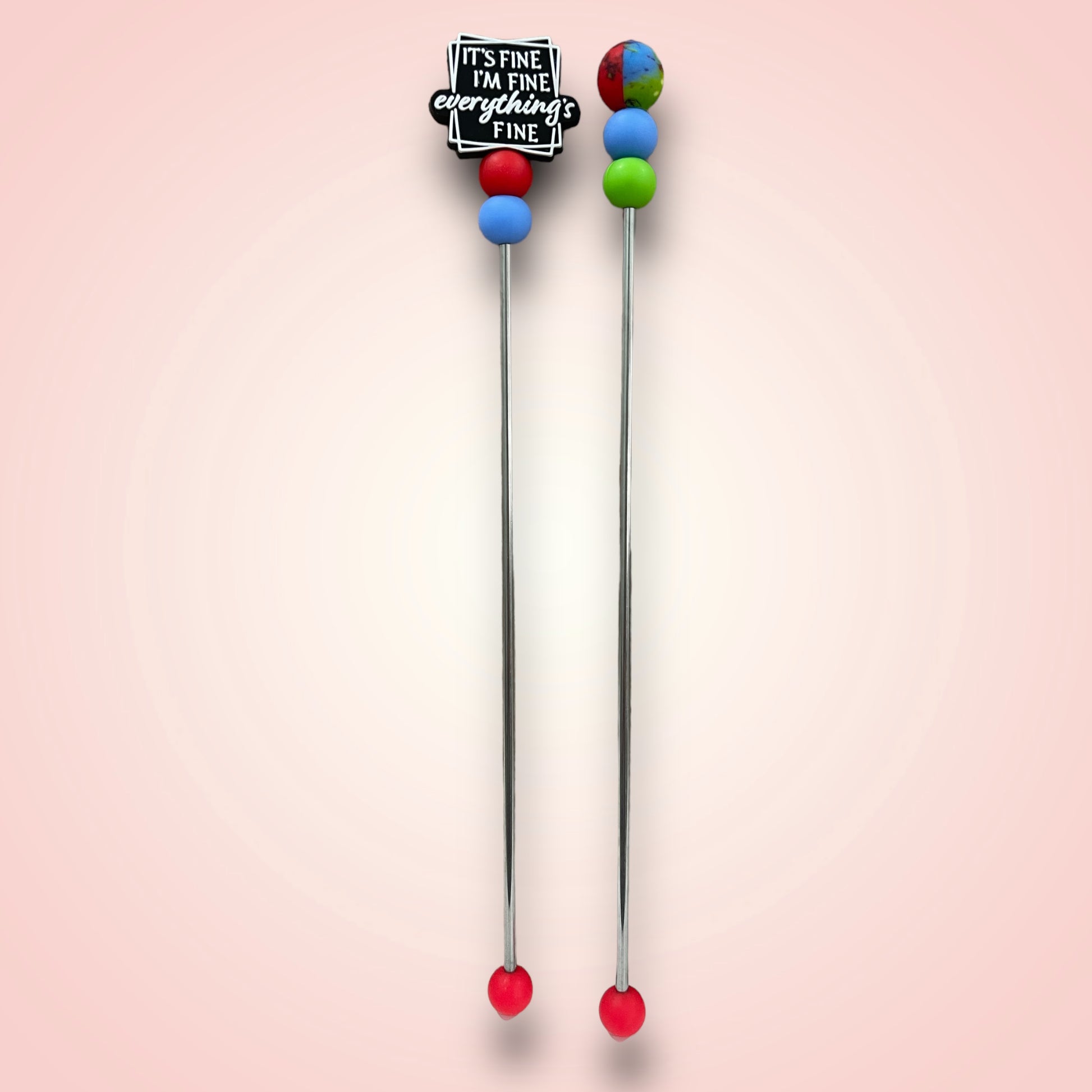 Each set comes with two stix, one with a focal and one beaded. They are 9 inches long with about 7 - 8 inches of working space. Each Stix comes with a reusable bag and safety tip.