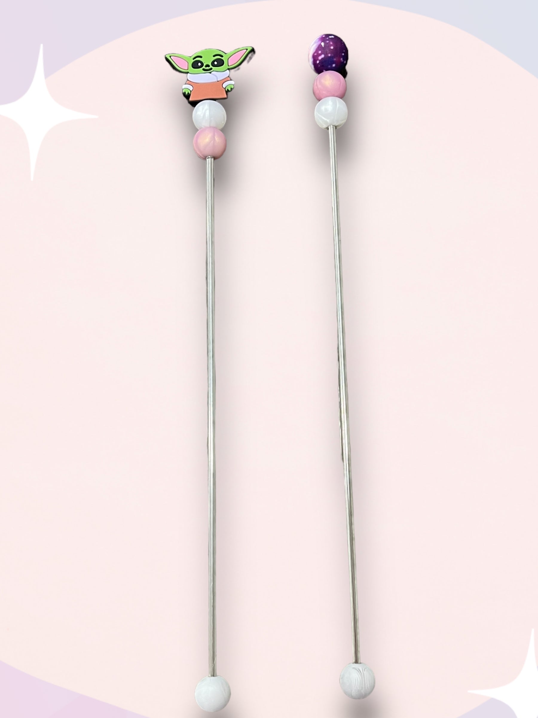 Ami Stitch Stix help hold your projects together while you sew them closed. They are 9 inches long with about 7 - 8 inches of working space. Each Stix comes with a reusable bag and two Ami Stitch Stix. The images are a sample of your Ami Stitch Stix design. We keep the the sets as close to the colors pictured however the beads used vary with each one made and some may glow in the dark. Your glow in the dark beads or solid color beads may not match the picture exactly and we do that on purpose to keep your set unique. Please be aware the printed beads fade over time.