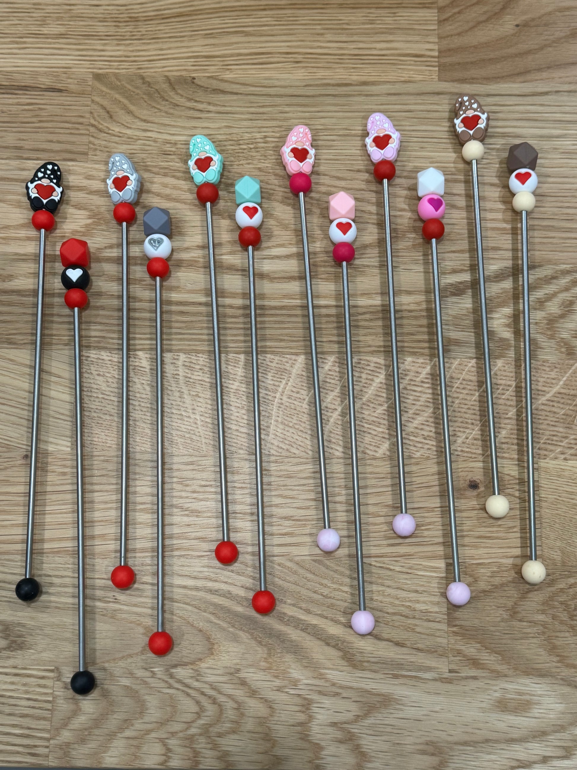 Each set comes with two stix, one with a focal and one beaded. They are 9 inches long with about 7 - 8 inches of working space. Each Stix comes with a reusable bag and safety tip.