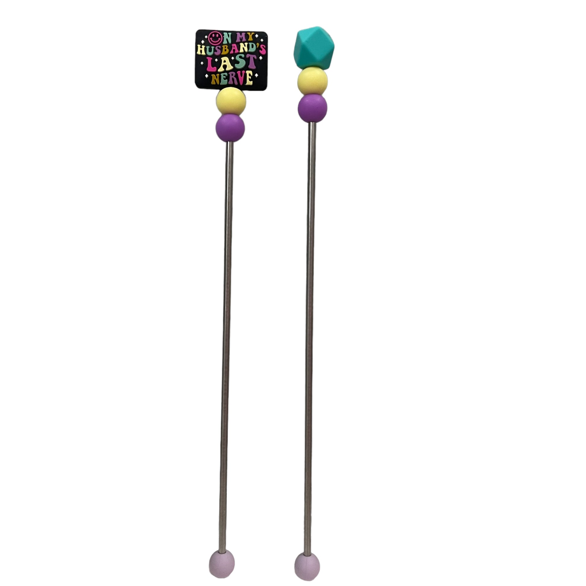 Each set comes with two stix, one with a focal and one beaded. They are 9 inches long with about 7 - 8 inches of working space. Each Stix comes with a reusable bag and safety tip.