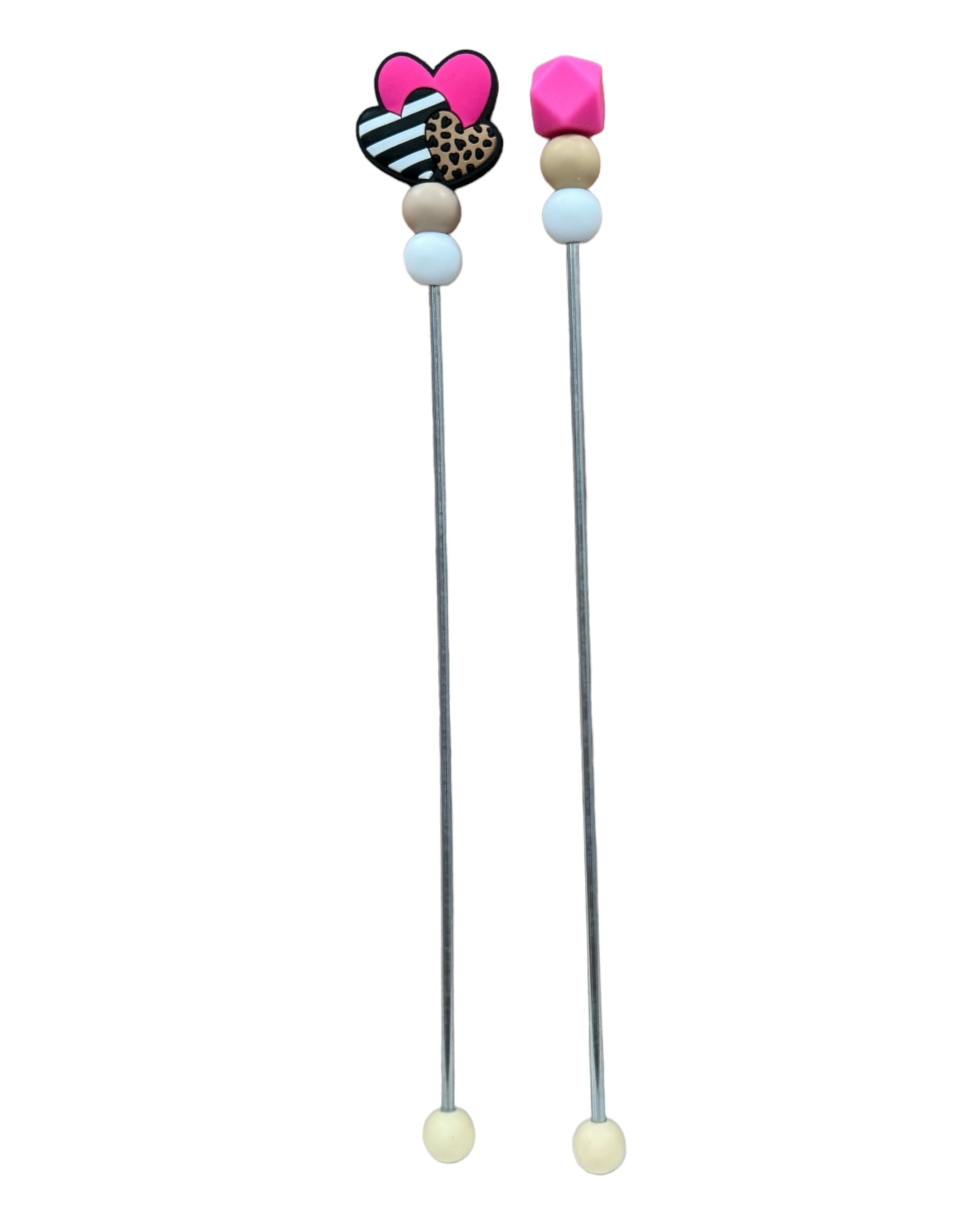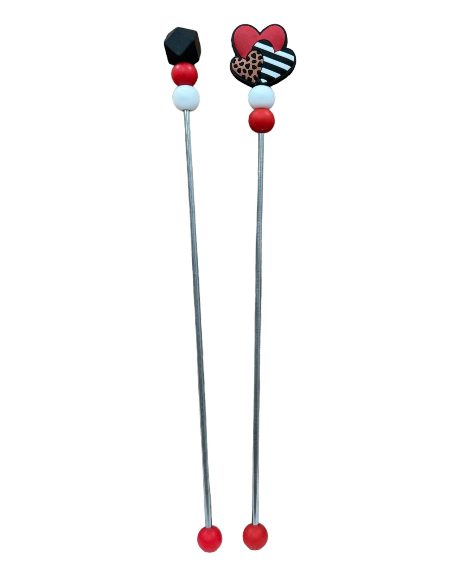 Each set comes with two stix, one with a focal and one beaded. They are 9 inches long with about 7 - 8 inches of working space. Each Stix comes with a reusable bag and safety tip.