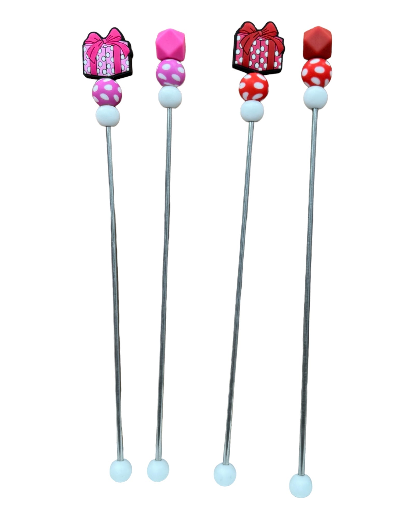 Each set comes with two stix, one with a focal and one beaded. They are 9 inches long with about 7 - 8 inches of working space. Each Stix comes with a reusable bag and safety tip.
