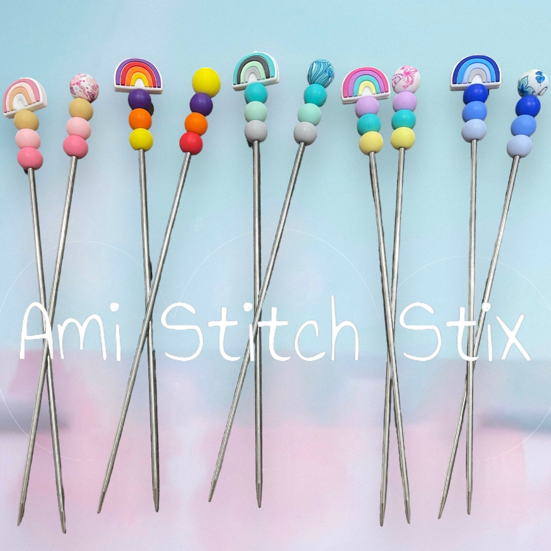 Ami Stitch Stix help hold your projects together while you see them closed. They are 9 inches long with about 7 - 8 inches of working space. Each Stix comes with a reusable bag and safety tip.