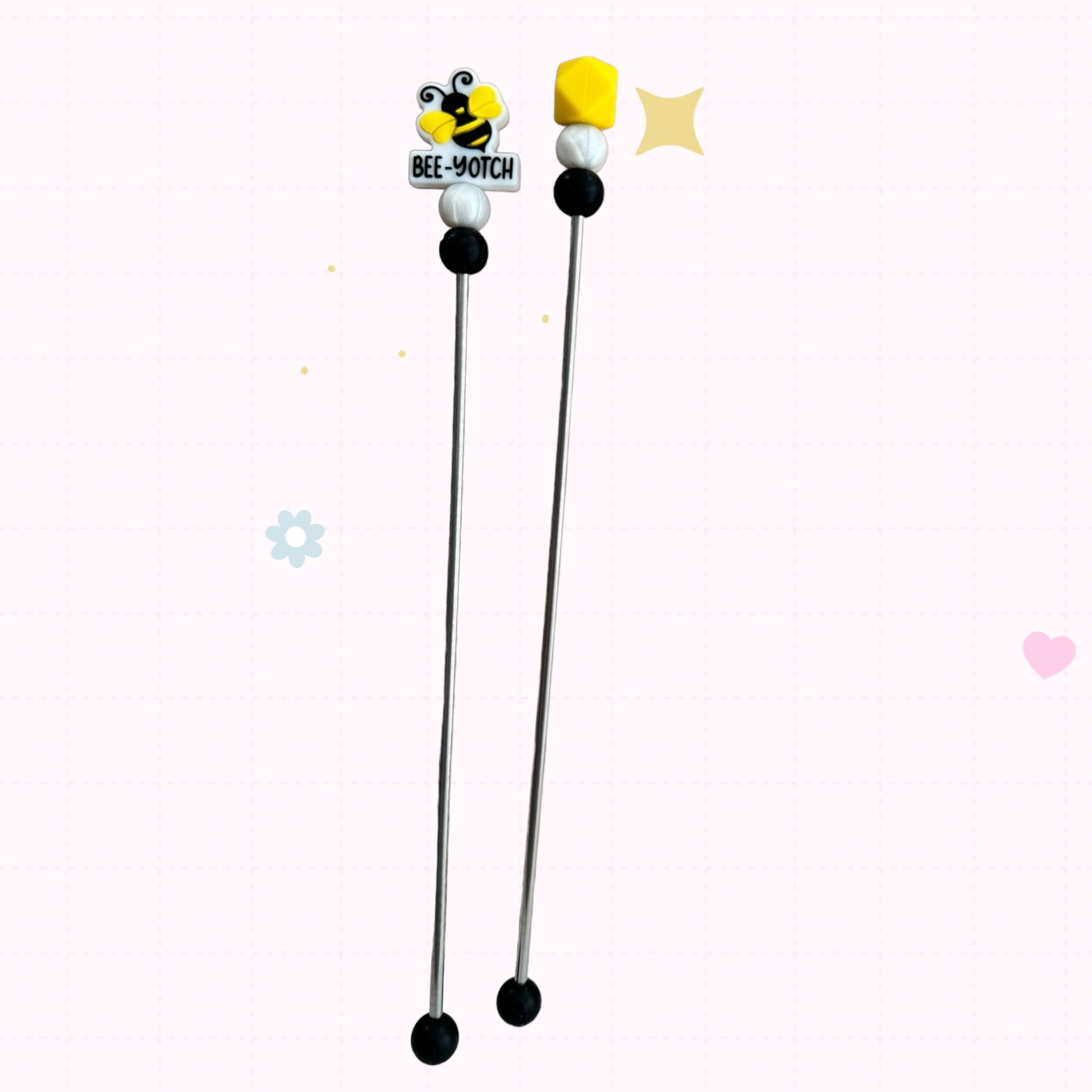 This AmiStix™️ set is made with as silicone topper. The beads used vary with each one made and some may glow in the dark. Your glow in the dark beads or solid color beads may not match the picture exactly and we do that on purpose to keep your set unique. AmiStix™️ help hold your projects together while you sew them closed. They are 9 inches long with about 7 - 8 inches of working space. Each Stix comes with a reusable bag and safety tip.