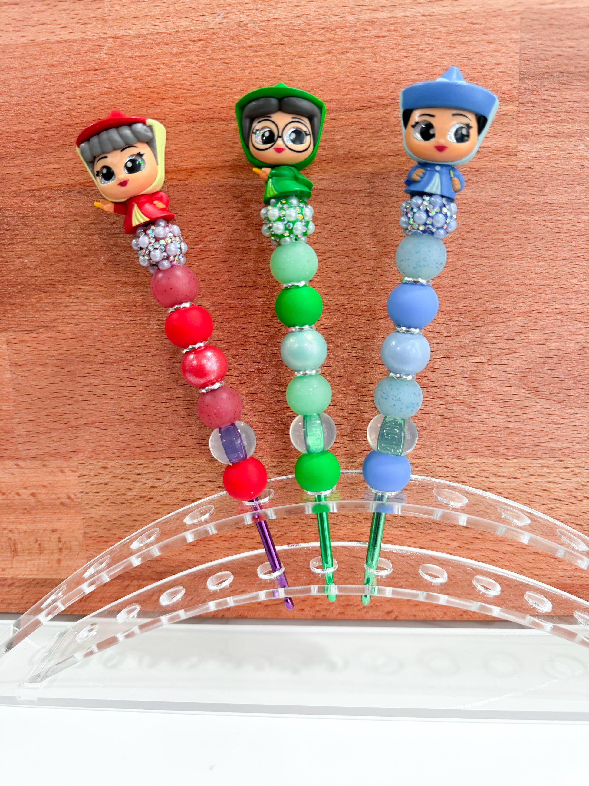 This set comes with three beaded hooks. Red fairy 3.75, Green Fairy 4.5 blue Fairy 4.5 This is a beaded crochet hook with silicone, wood, or acrylic beads. The beads used vary by design. Hook used is tapered. The image is a sample of the design but can change depending on availability. Processing time for beaded crochet hooks is 1-2 weeks. The collectible topper is an authentic Disney Doorable. Doorables may come with factory paint defects.