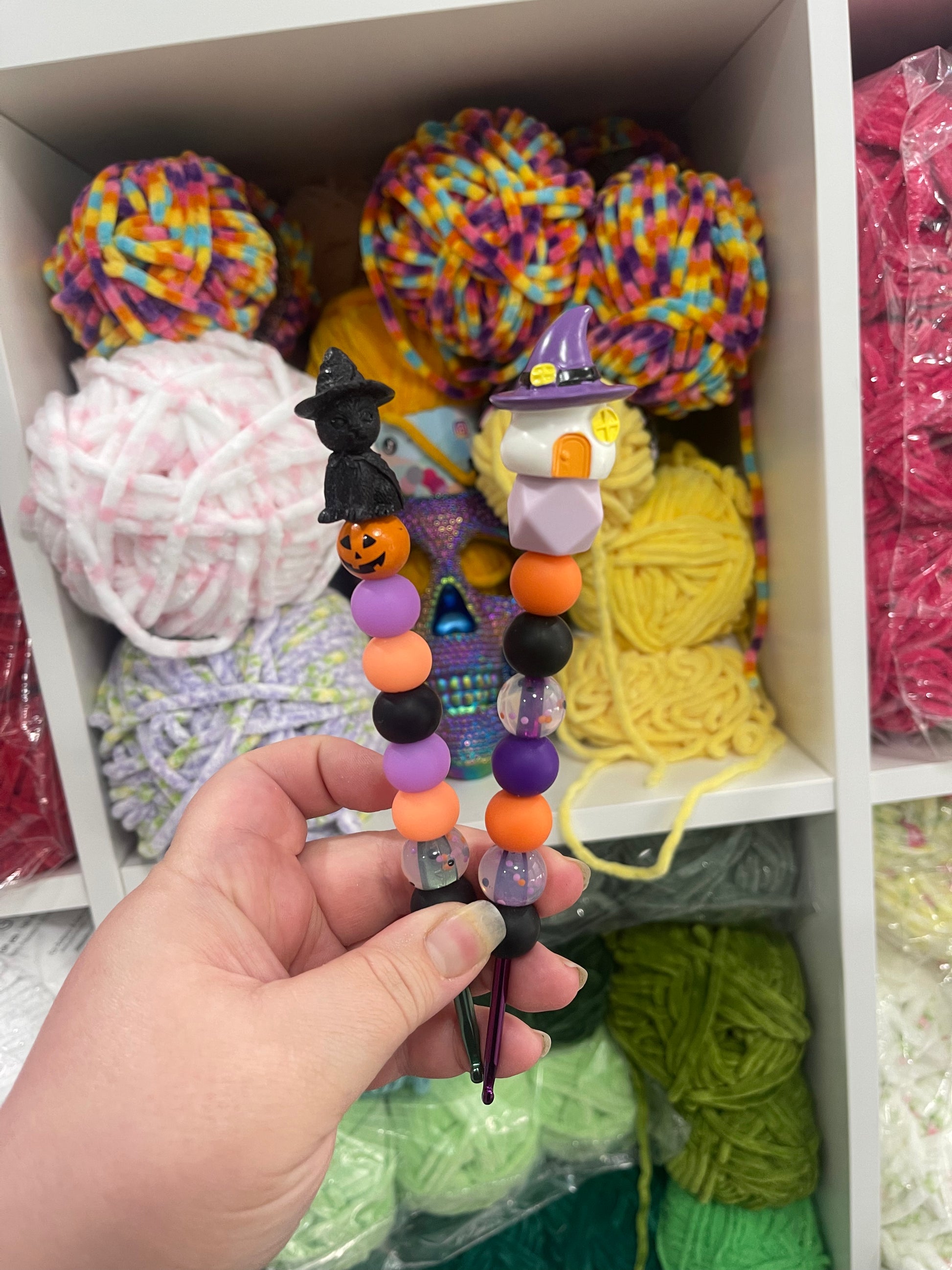 Silicone Handle Crochet Hook. The images are a sample of your design. We coordinate the hook with the topper that you choose. The beads used vary with each one made and some may glow in the dark. Your glow in the dark beads or solid color beads may not match the picture exactly and we do that on purpose to keep your set unique. Please be aware the printed beads fade over time.
