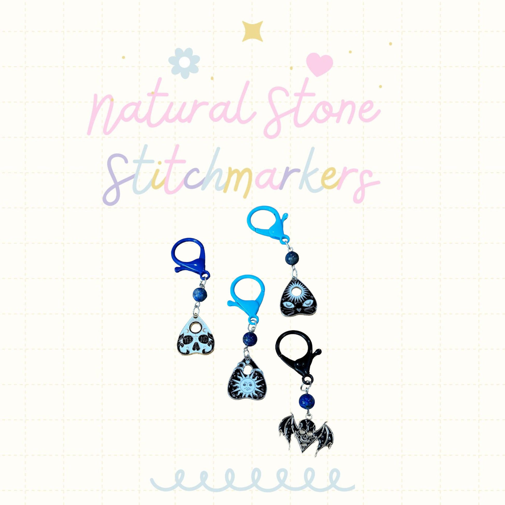 Each stitch marker sold individually. You will receive the one you choose from drop down. Latch color will vary from picture. Natural Stones vary by color and clarity
