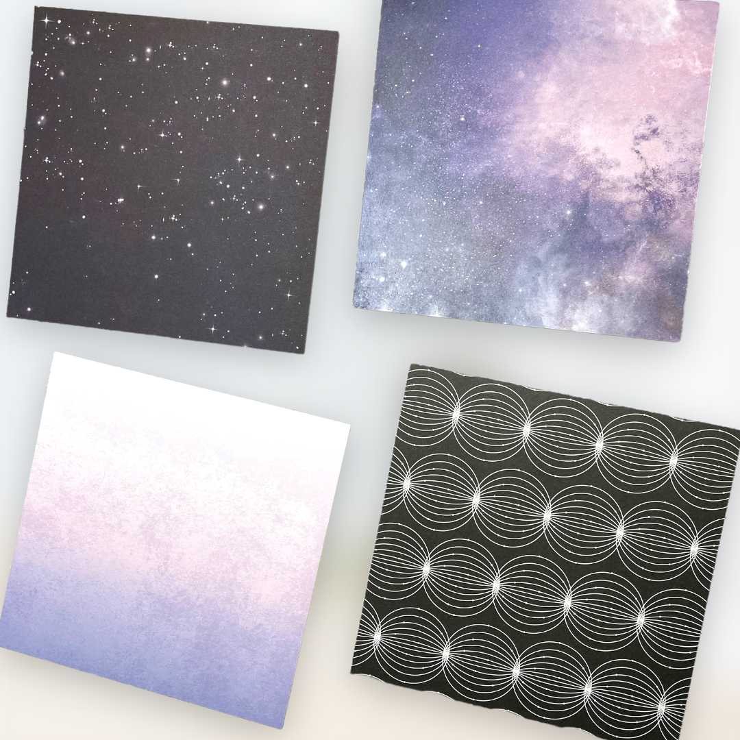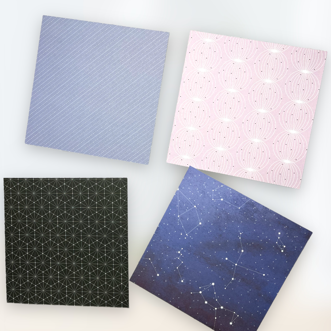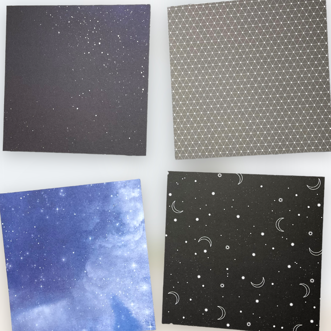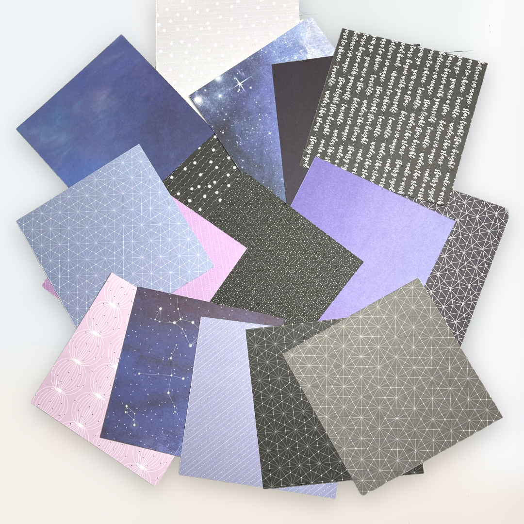 This cardstock is a zodiac galaxy theme. There are 40+ total pieces. You will get every pattern shown in the picture. The 16 6x6 pages are reversible so you will have 32 patterns. There is sun, moons, stars, galaxy’s and pattern pages.