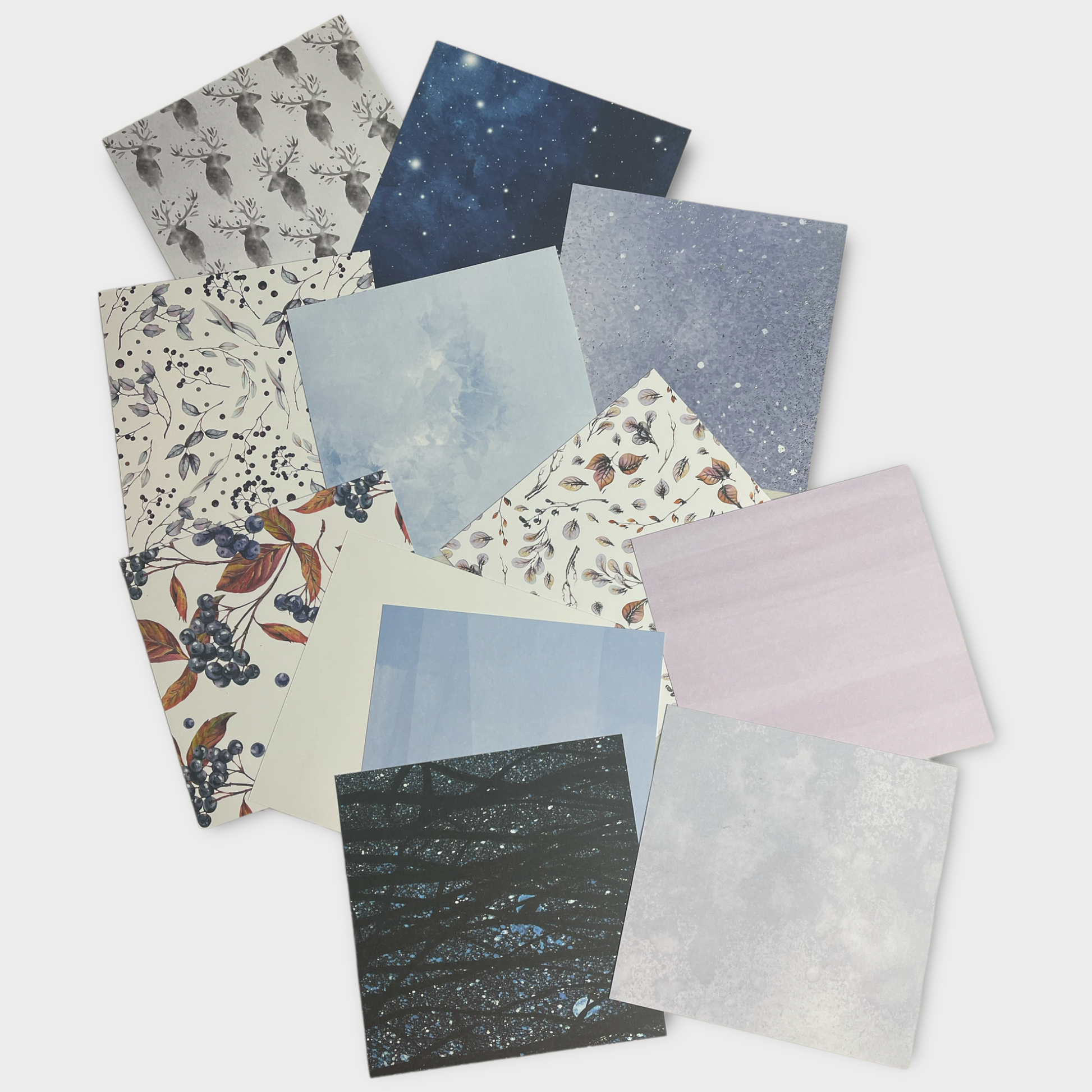This cardstock has gorgeous hues of blue and feels like a fantastical winter wonderland. There are 12 total pages included in this pack. You will get every pattern shown in the picture. There are no duplicates in this pack.