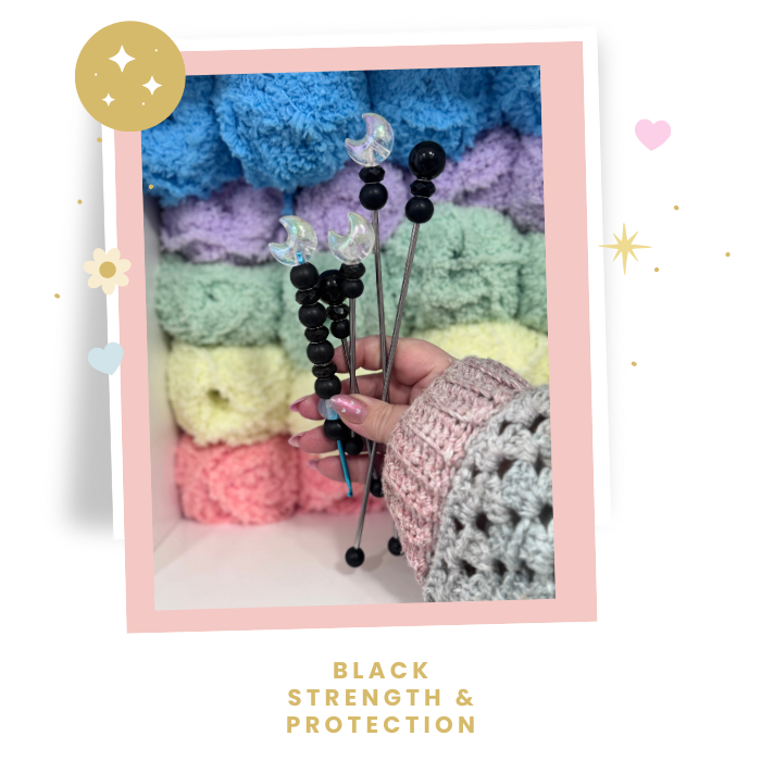 Each crochet hook and Amistix is lovingly handcrafted with a resin moon and shimmering crystal beads. These tools are more than creative companions—they’re vessels for intention, manifestation, and magic.
