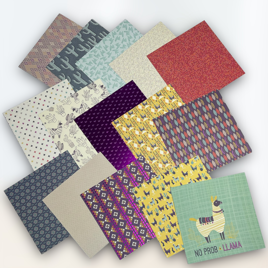 This cardstock is so fun and cute. There are 15 total pages included in this pack and are reversible. You will get every pattern shown in the picture. There are no duplicates in this pack. There is cute llamas, cactus, and patterns
