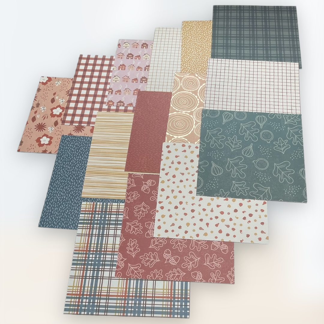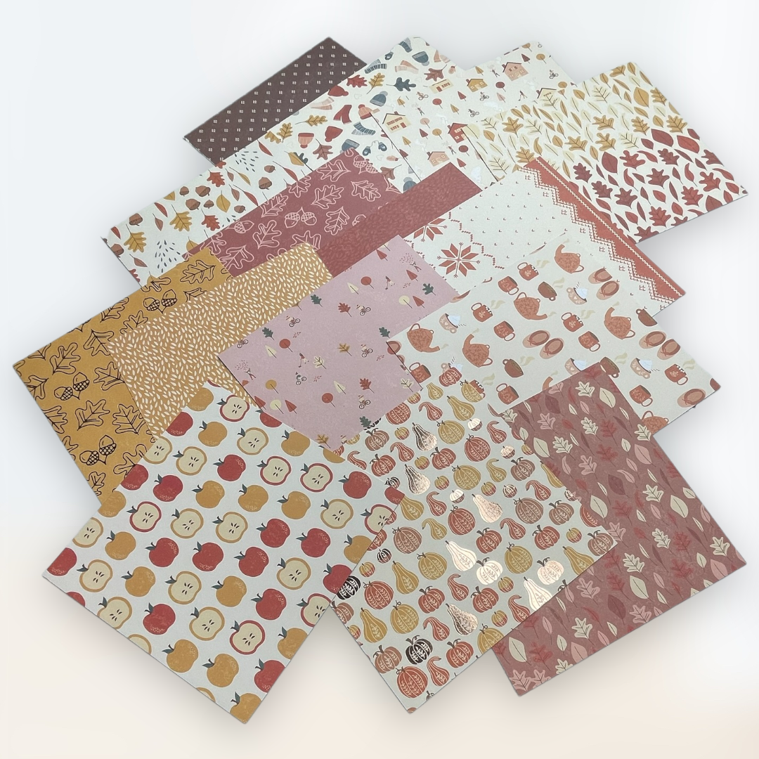 This cardstock is warm and lovely neutral colors. There are 15 total pages included in this pack and are reversible. You will get every pattern shown in the picture. There are no duplicates in this pack. There is a cute apples, pumpkins, leaves, and florals.